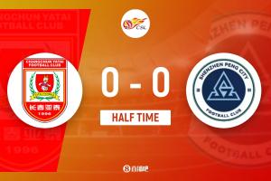 半场结束,长春亚泰0-0深圳新鹏城。