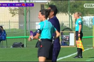 体育资讯10月24日讯 U17女子世界杯小组赛C组,厄瓜多尔女足U17vs中国女足U17。比赛第73分钟,中国队教练组申请VAR挑战,认为对手禁区内手球。裁判观看回放后判认定不是点球。