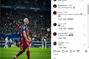 奥尔莫社媒晒出庆祝进球的照片,并写道:“这只是开始。”