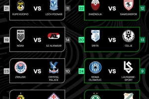 体育资讯1月16日讯 欧足联官方公布了欧协联淘汰赛附加赛对阵情况,乔治罗尼亚和佛罗伦萨交手,水晶宫的对手则是日林斯基。