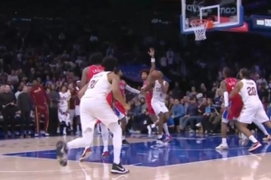 GIF-莫布里造成乌布雷犯规 76人挑战失败