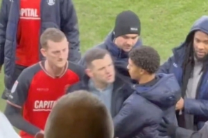 体育资讯2月23日讯 《镜报》报道,在卢顿与伯顿1-1战平后,前阿森纳中场威尔希尔与愤怒的球迷发生激烈冲突,最终被带离现场。
